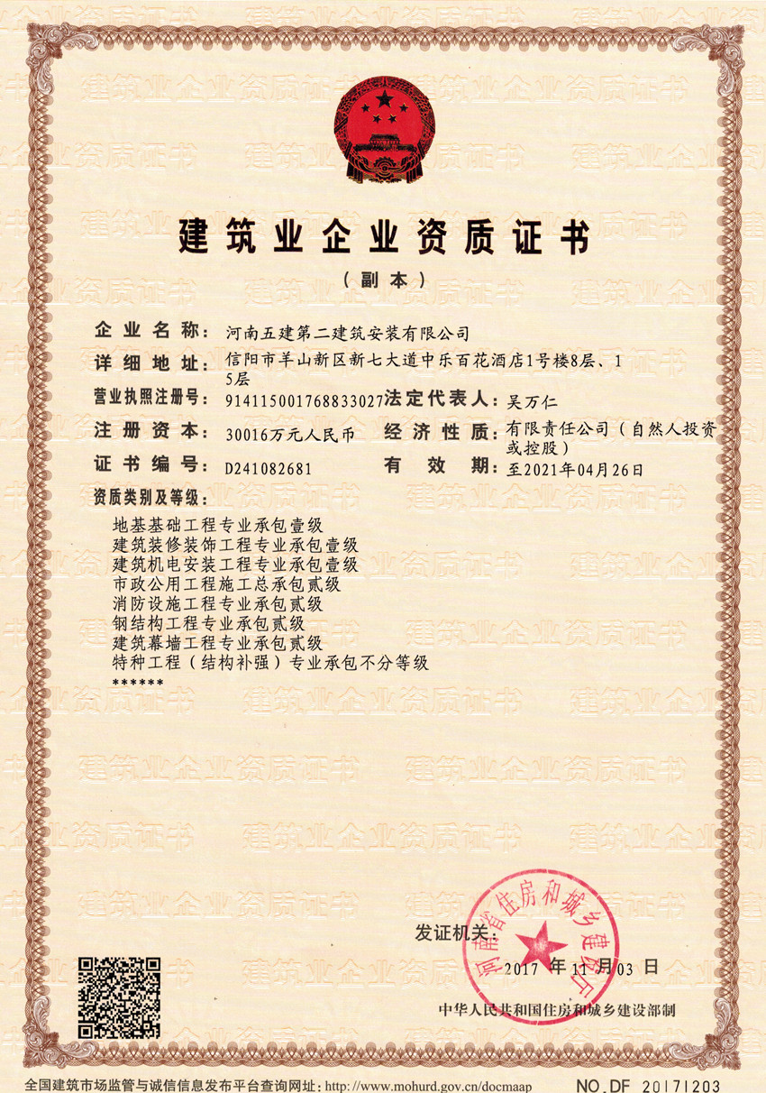 公司堅(jiān)持為社會(huì)奉獻(xiàn)精品工程,以質(zhì)量求生存。創(chuàng)建迄今,共獲得省部級以上優(yōu)良工程200多項(xiàng),先后10多次獲得國家級質(zhì)量獎(jiǎng)。
