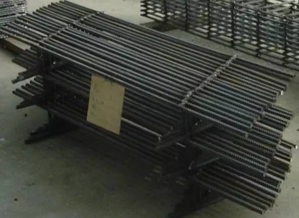 7、 雙層鋼筋網(wǎng)片中間應(yīng)設(shè)置梯子筋,以固定鋼筋間距。