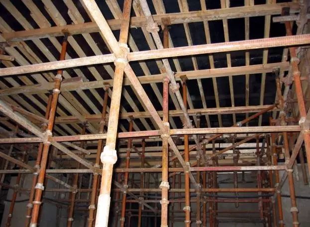 4、 支設(shè)立桿時(shí),為防止把下層樓面混凝土壓傷,立桿底部必須墊方木墊塊;