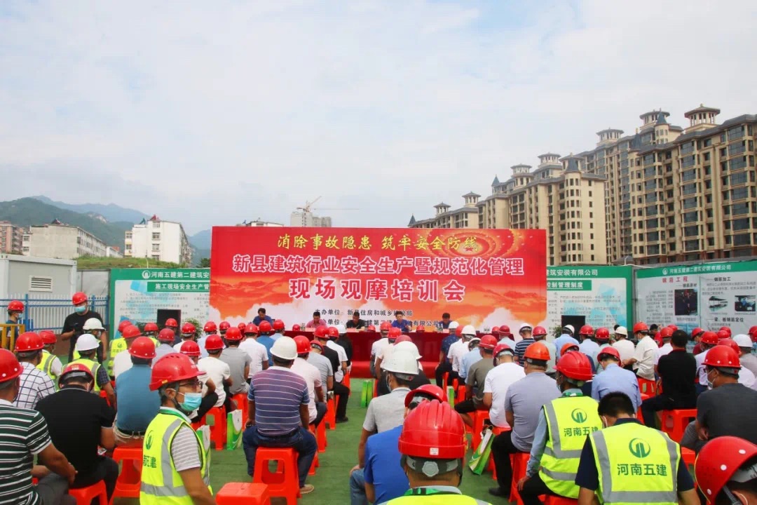 6月19日,新縣建筑行業(yè)安全生產(chǎn)暨規(guī)范化管理現(xiàn)場觀摩培訓(xùn)會在我公司承建的三道河棚戶區(qū)改造項目施工現(xiàn)場召開,全縣建筑施工企業(yè)主要負(fù)責(zé)人、在建工程項目負(fù)責(zé)人、項目總監(jiān)、規(guī)模以上建設(shè)單位負(fù)責(zé)人等共130余人出席此次活動。與以往活動有所不同,此次活動首先進行的是現(xiàn)場觀摩,參會人員分兩組對工地現(xiàn)場進行觀摩。會議階段,公司副總經(jīng)理吳建功做先進典型發(fā)言。住建局黨組成員、副局長扶進成通報當(dāng)前階段全縣建筑行業(yè)管理、施工安全、工程質(zhì)量、揚塵治理等工作情況,并對下步工作、著重安全生產(chǎn)方面提出要求。隨后,商務(wù)中心區(qū)紀(jì)委書記劉彬發(fā)表講話。最后,安委辦主任、應(yīng)急管理局黨委書記劉鵬講話并為大家上安全課。