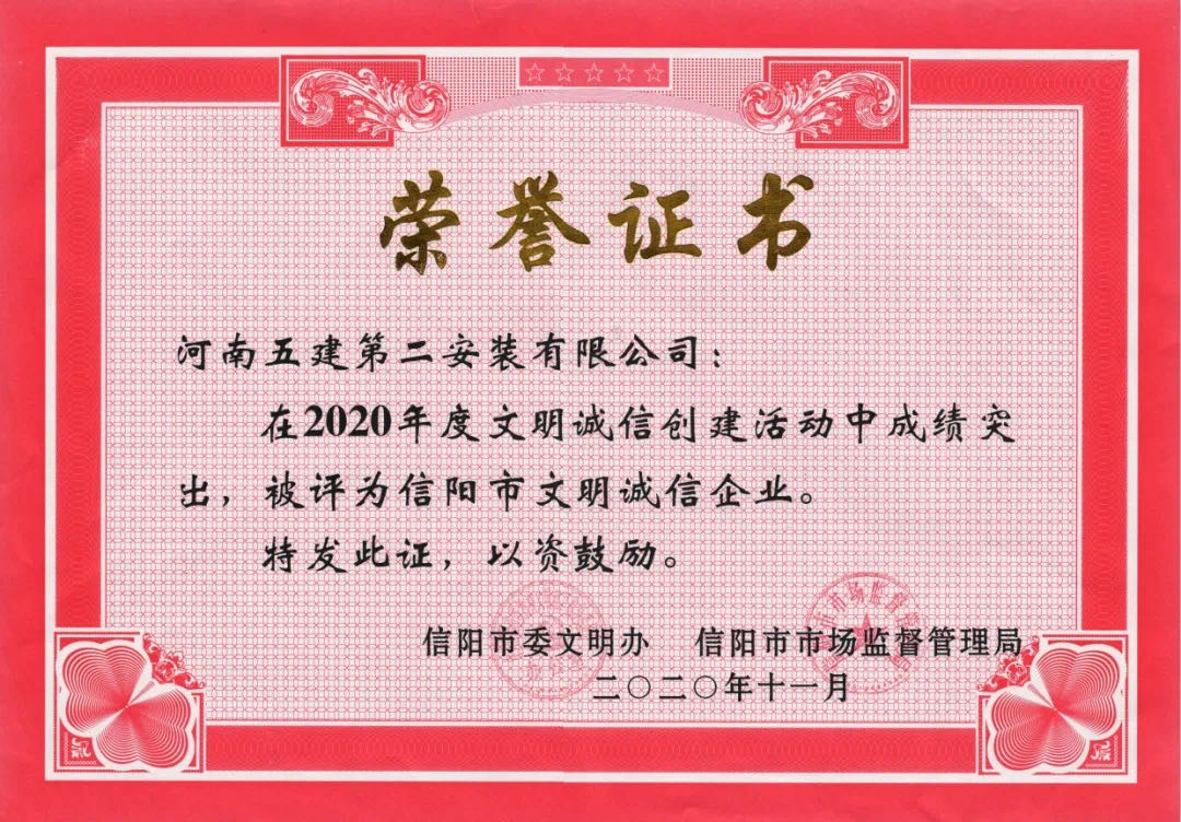 2020年度信陽(yáng)市文明誠(chéng)信企業(yè)