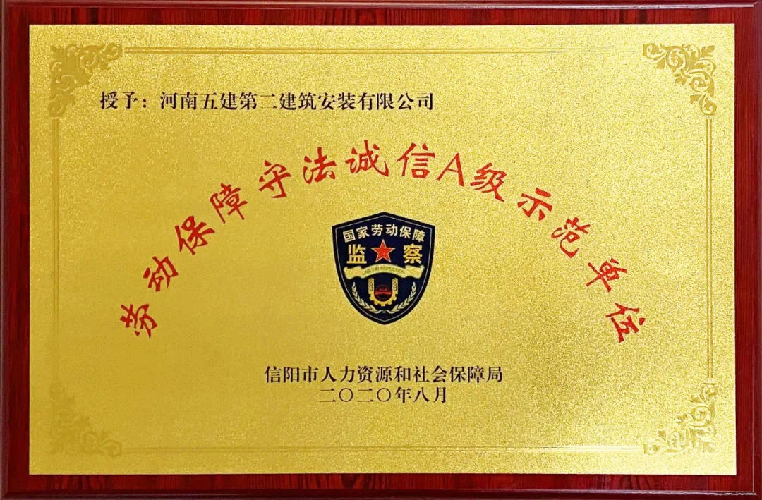 信陽(yáng)市勞動(dòng)保障守法誠(chéng)信A級(jí)示范單位